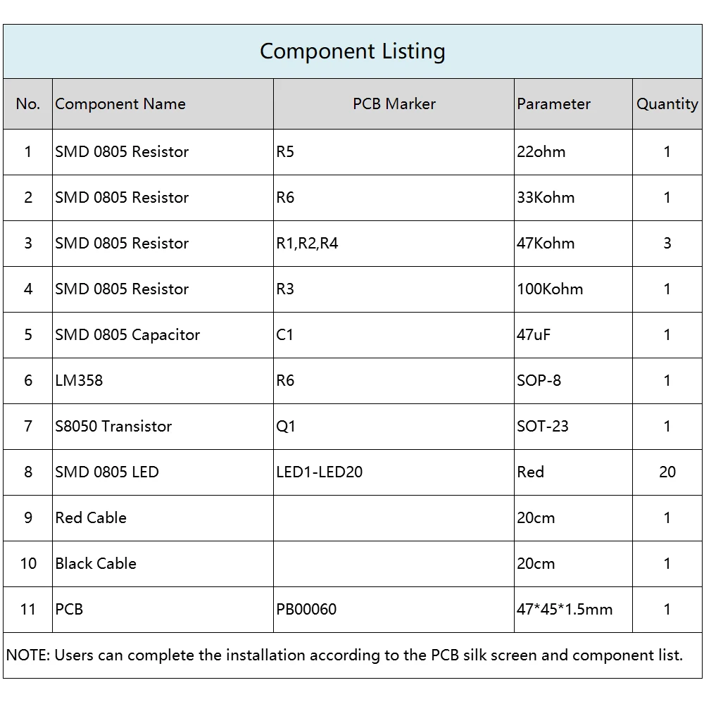- Todo lo que Necesitas: El kit incluye todos los componentes electrónicos necesarios (LEDs SMD, resistencias, cables, y más) para completar el proyecto con éxito.